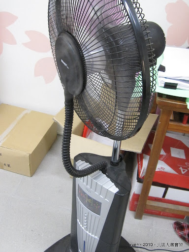 除了開收音機,開電扇也是尤其重要的一件事情,小小的一間辦公室,就有五六台!